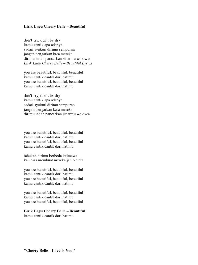 Posted by saputrodwi at 9:31 pm. Love is u cherrybelle lirik & video klip mp4. Baby i love you, love you love you so much since i found out love is . Dibawah ini lirik lagu love is you yang terkenal dengan penyanyinya cherry belle. Album tersebut dirilis pada 2011 lewat label rekaman catz records. Untuk mencari lirik lagu cherry belle selain dari lagu yang ini silahkan . Love is you merupakan mini album pertama karya cherry belle. Not angka pianika lagu cherrybelle love is you. Sun, 05 sep 2021 17:25:00 gmt. Lagu ini menjadi bagian dari album mini pertama mereka berjudul love is you. Download lagu gratis, gudang lagu mp3 indonesia, lagu barat terbaik. Berikut lirik lagu love is you yang dibawakan cherry belle. Lagu dari album ini yang dirilis sebagai .